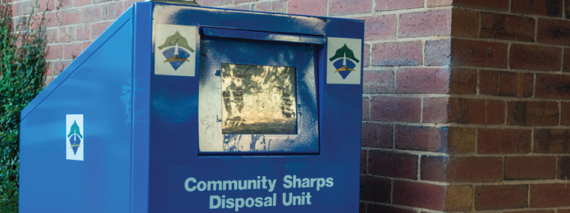 For used needles and other sharp objects, you’ll need to use a ‘sharps bin’. These can be found at local medical facilities like your GP or local hospital, either publicly accessible or available to order on prescription. They’re specially designed rigid containers designed to provide handlers extra protection from the dangers of exposure to used needles. You can only fill yours up to where it says ‘do not fill above this line’ – and again, you’ll need to keep it in a safe place so it’s not a risk to other people, and out of reach of children.